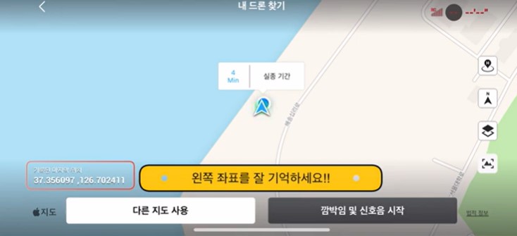 드론의 위치를 확인하기 위해 카카오 맵 앱을 설치해야 한다.